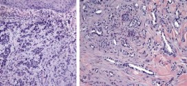 El carcinoma en coraza. Tumor maligno ó manchas malignas en general y especialmente el formado por células epiteliales o pigmentarias. Este tipo de carcinoma puede ser doloroso, aunque por lo general es asintomático (la persona puede no darse casi cuenta en dolor). Esta variante clínica es la alteración cutánea tipo cuero del cáncer de mama esclerosante metastásico, conocido como carcinoma …