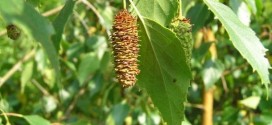 El abedul (Betula pendula). Es un árbol que crece sobre suelos arenosos, alcanza una altura de treinta metros y posee una copa estrecha, con ramas ascendentes que se redondean. La corteza de color marrón brillante se vuelve poco a poco blanca y surcada de manchas negras, pelándose por la parte de arriba. Las hojas verdes son triangulares, de base redondeada …